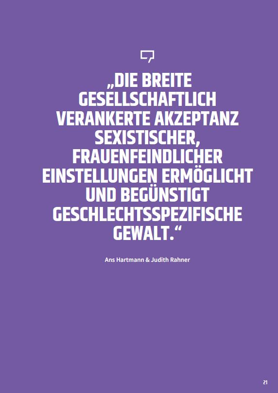 Die breite, gesellschaftliche Akzeptanz von sexistischen Einstellungen ermöglicht geschlechtsspezifische Gewalt. Antifeminismus wiederum legitimiert die Gewalt systematisch. Die Datenlage zu geschlechtsspezifischer Gewalt in Deutschland ist schlecht: Es gibt kaum Dunkelfeldstudien, die das Ausmaß geschlechtsspezifischer Gewalt systematisch erheben. Es ist aber bekannt, dass mehrfach marginalisierte Personen, z. B. behinderte Personen oder Personen ohne sicheren Aufenthaltsstatus, besonders gefährdet sind, geschlechtsspezifische Gewalt zu erleben.